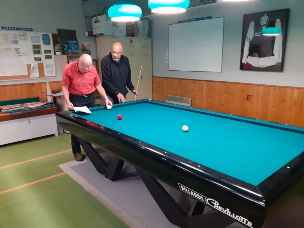 Les joueurs sont concentrés, appliqués et à l’écoute pour réussir les exercices présents dans le programme du billard d’OR.