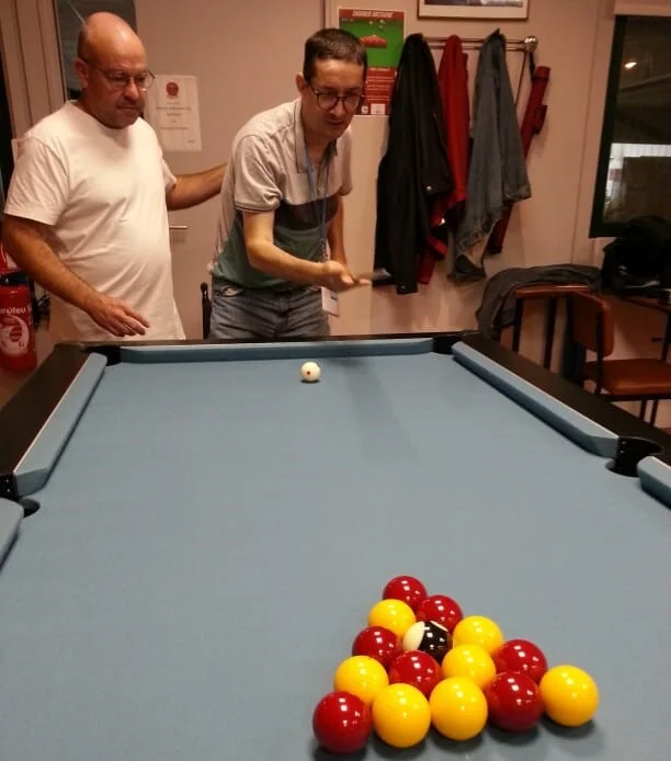 Tous les jeudis après midi, Manu dispense ses cours de Blackball à son groupe de fidèles adhérents qui écoutent avec attention ses précieux conseils